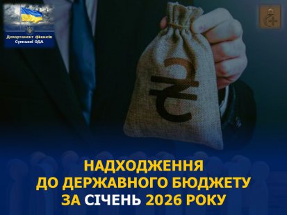 За січень 2026 року платниками податків Сумської області до загального та спеціального фондів державного бюджету мобілізовано 1,5 млрд гривень (+0,1 млрд гривень до минулого року), повідомляє Департамент фінансів Сумської обласної державної адміністрації.