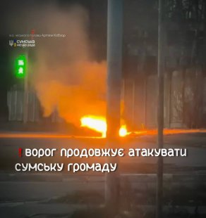Як повідомили в мерії Сум, близько 18:10 ворожий дрон поцілив у Ковпаківському районі міста. Внаслідок удару відбулося загоряння самого безпілотника. Вже о 18:55 ворог завдав ще одного удару БпЛА типу «молнія» по цивільному автомобілю в одному зі старостатів громади.