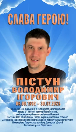 Як повідомляє ініціаторка звернення — дружина загиблого Катерина Пістун, її чоловік, військовослужбовець Національної гвардії України, командир 4-го відділення військової частини 3018 НГУ, загинув 30 липня 2025 року у населеному пункті Никонорівка Покровського району Донецької області.