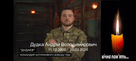 У четвер, 20 лютого, о 13:00 у Свято-Георгіївському храмі (м. Суми, вул. Збройних сил України, 7) відбудеться прощання із загиблим у російсько-українській війні командиром штурмового взводу Дудкою Андрієм Володимировичем.