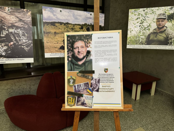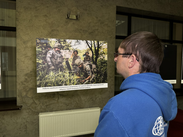 Улюблена фотографія автора виставки у підбірку вона не потрапила. Загалом, за словами Олександра Бондаренка, на виставці, яку організувало обласне управління молоді та спорту, представлено понад два десятки світлин, зроблених під час повномасштабної війни.